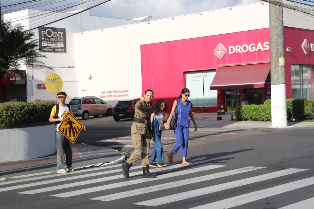 A ação é promovida pela Coordenadoria de Educação para o Trânsito (CET) e contou com a participação do Grupo Cones de Teatro e de agentes de trânsito, que durante quase toda a manhã, realizaram abordagens educativas com condutores e pedestres, orientando sobre a importância de parar antes da faixa e garantir uma travessia segura.